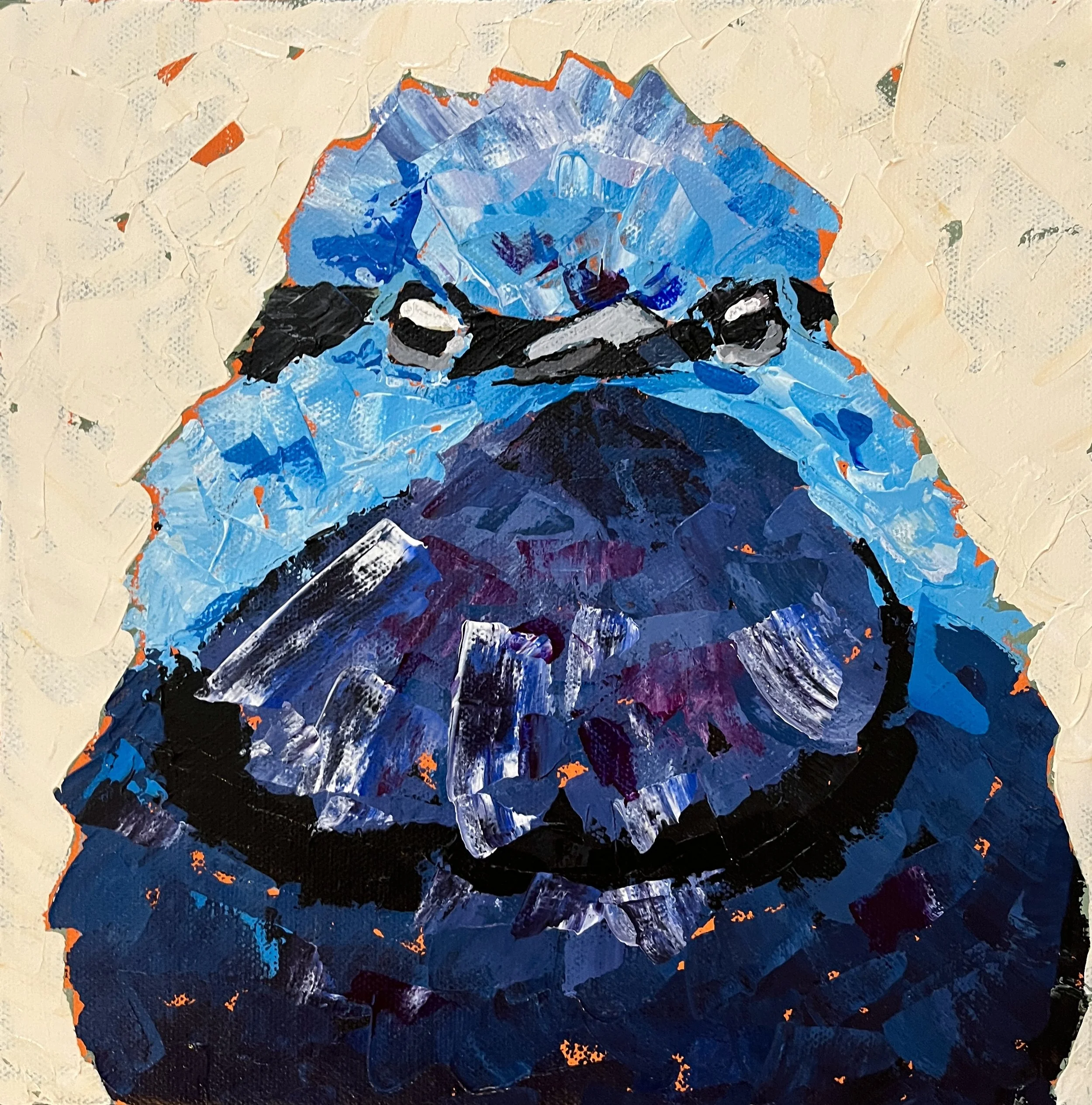 The painting is framed for a total size of 19x19 inches, and it won “Best of Show” at a local art show in the spring of 2025. Acrylic on panel. Framed.