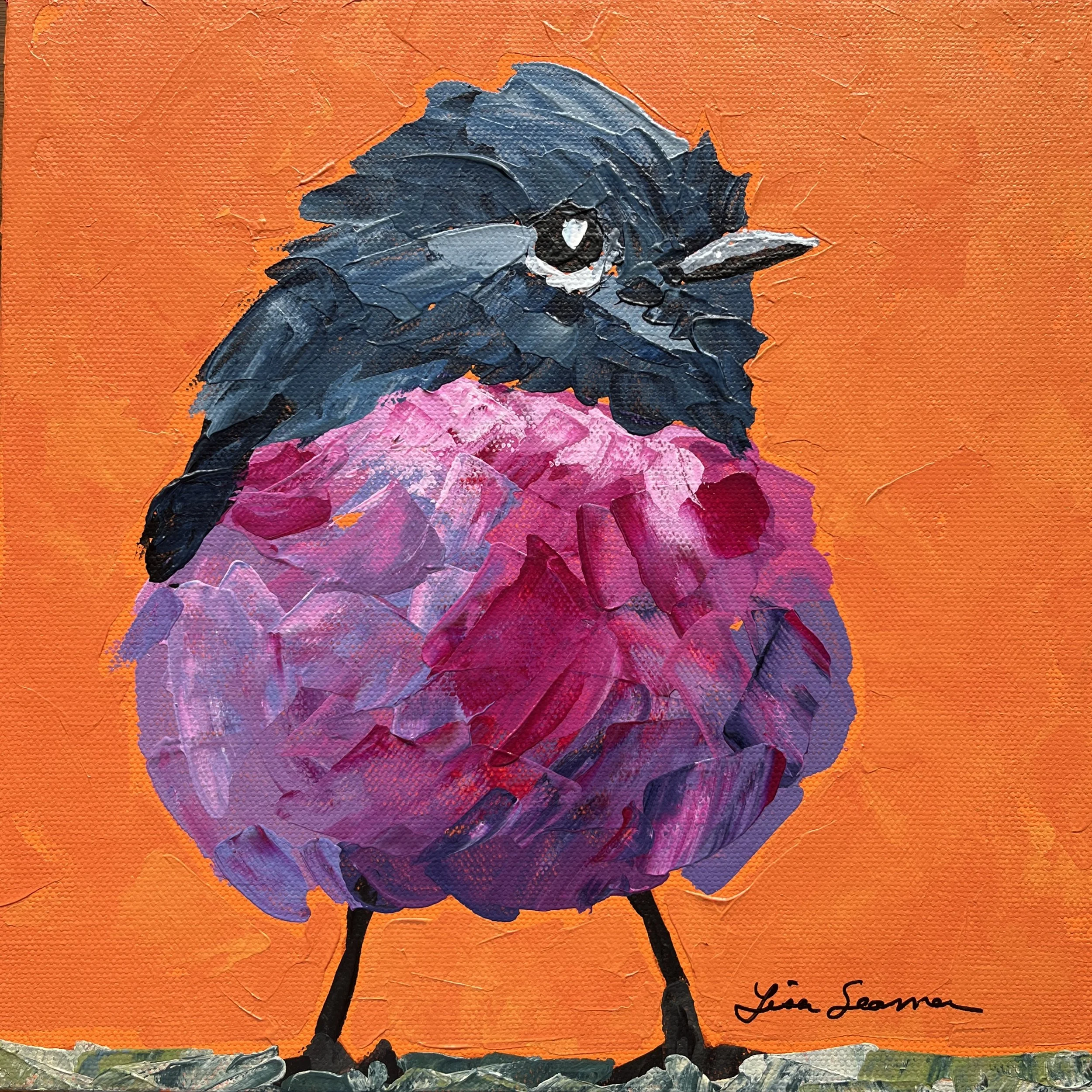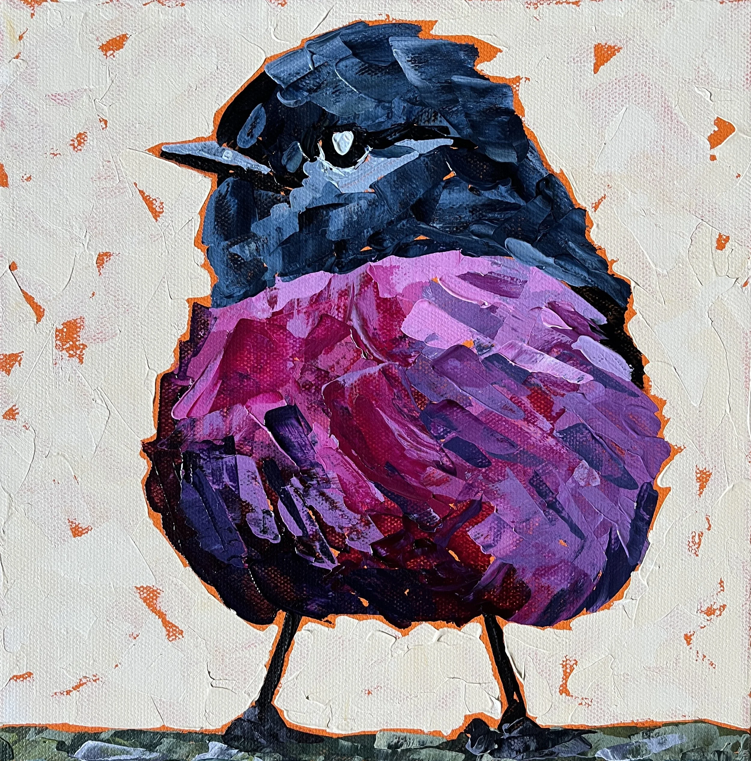 I love to paint birds. This cute little pink robin lives in Australia. I’ve never visited there, but would love to see a pink robin in real life!