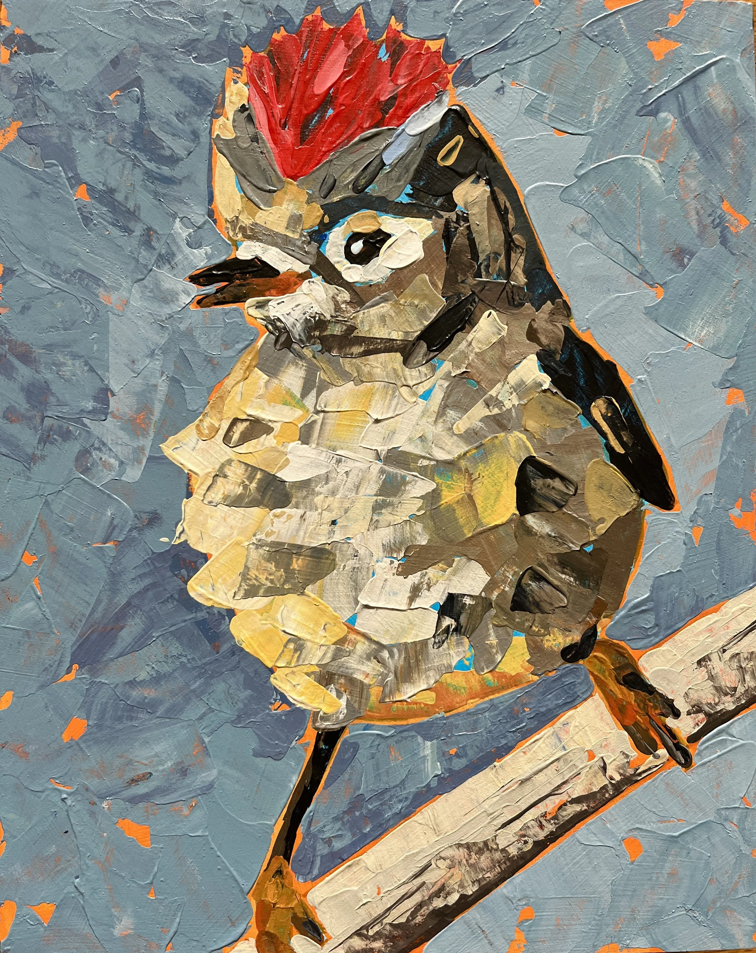 I painted another ruby crested kinglet. I just get a kick out of their call, which sounds like they are saying “cheeseburger, cheeseburger, cheeseburger, chips!”