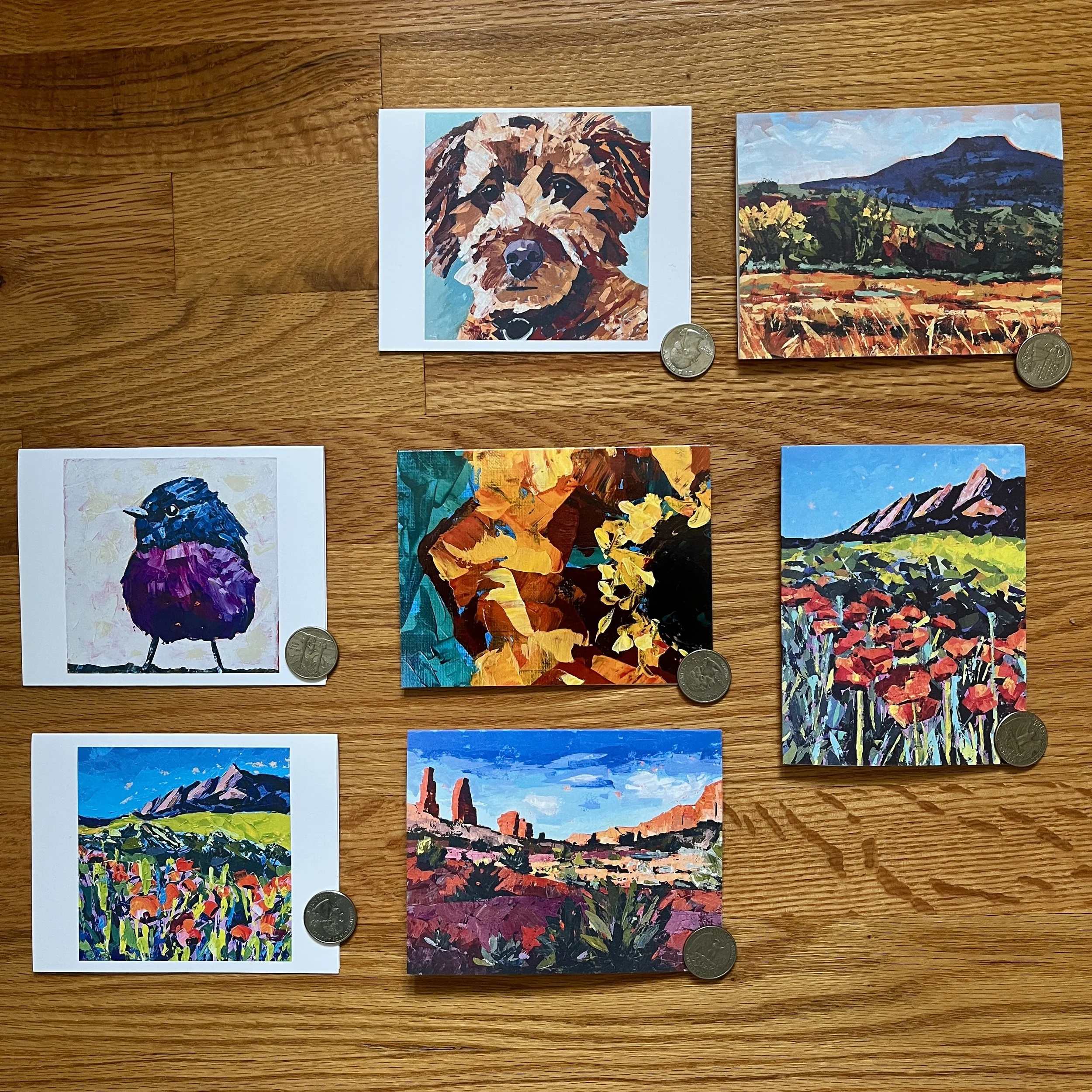 Greeting cards are a set of 3 for $10. Feel free to mix and match.