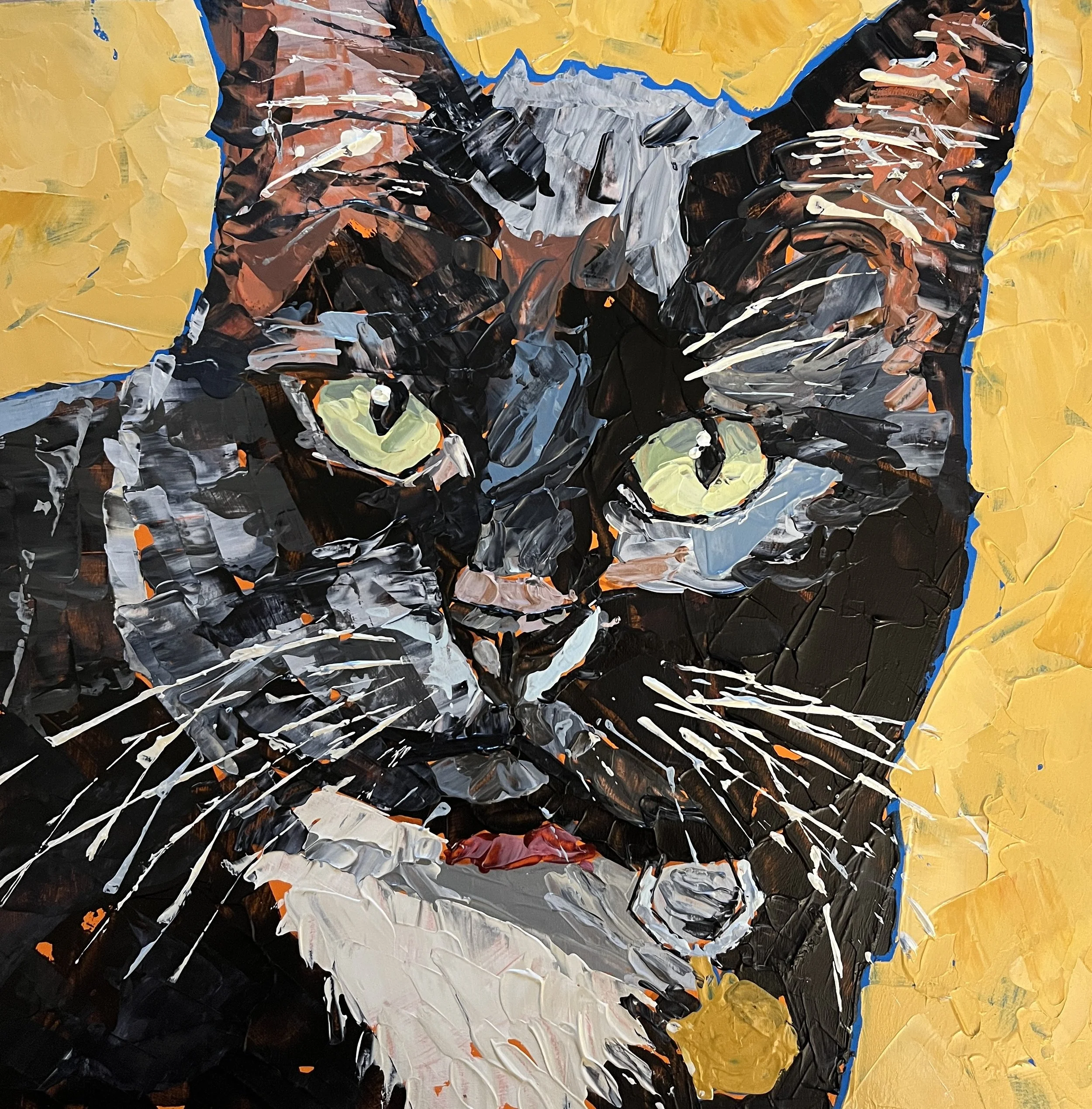 I painted this cat for a friend, and doesn’t she (the cat, that is) have the best name? It’s Flora Sassafras! 10x10 inches, acrylic on cradled wood.